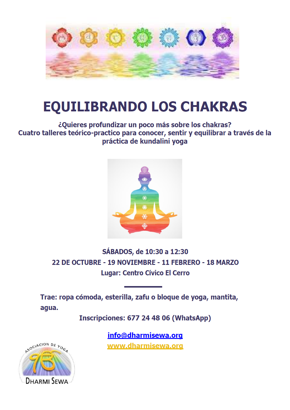 Empezamos con el ciclo «Equilibrando los chakras«, cuatro talleres teórico-prácticos para conocer, sentir y equilibrar a través de la práctica de Kundalini Yoga que tendrán lugar en octubre, noviembre, febrero y marzo.